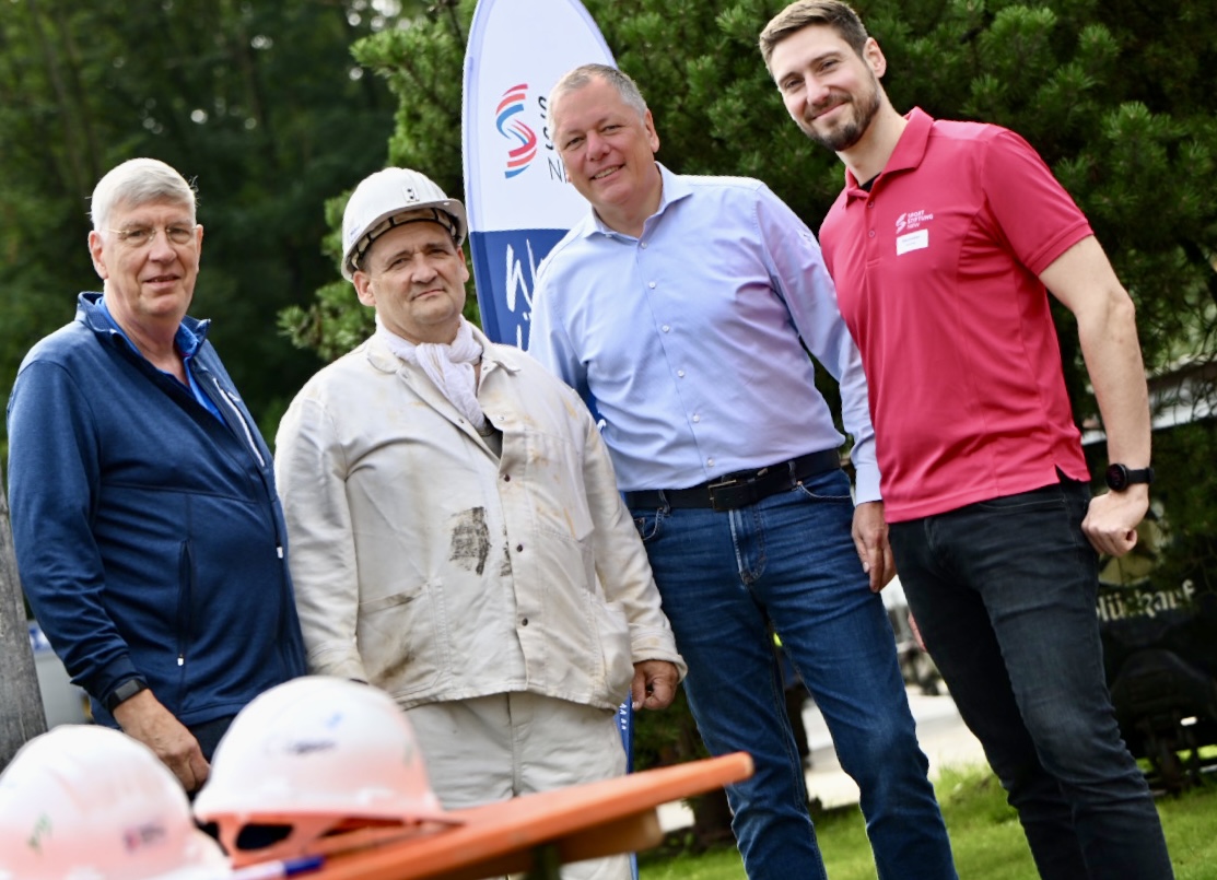 Bild unten links: Ingo Wolf, Vorstandsvorsitzender Sportstiftung, Ehrenamtler Michael Leonhard vom Trainingsbergwerk Recklinghausen, WestLotto-Geschäftsführer Andreas Kötter, Sportstiftungs-Geschäftsführer Maximilian Hartung (Fotos: ©Sportstiftung NRW_Andrea Bowinkelmann)