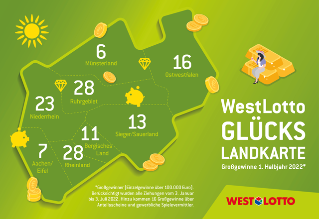 18 Millionäre und ein neuer deutscher Rekordgewinn mit 110 Millionen Euro: Das sind die Highlights des ersten Halbjahres 2022 bei WestLotto.