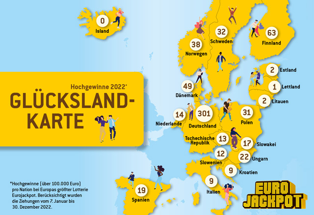 Gewinnerbilanz 2022 – Europa-Vergleich der Hochgewinne ab 100.000 Euro aufwärts