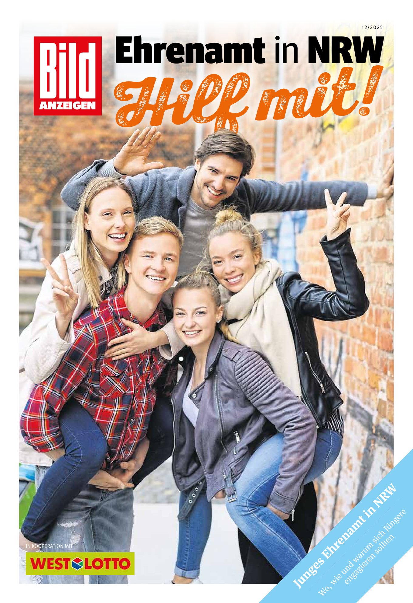 Denn dem Ehrenamt in Nordrhein-Westfalen droht ein handfestes Nachwuchsproblem. Wie eine Sonderauswertung des EhrenamtAtlas zeigt, fehlen rechnerisch mehr als eine Million Ehrenamtliche, wenn die Älteren irgendwann in den Ehrenamtsruhestand gehen. Um dieser Herausforderung zu begegnen, hat WestLotto gemeinsam mit dem Netzwerk bürgerschaftliches Engagement (NBE NRW) die Initiative Junges Ehrenamt für NRW gegründet – von jungen Menschen, für junge Menschen. Lesen Sie in der BILD-Beilage, was genau die Initiative bereits angepackt hat und was die jungen Menschen in den kommenden Monaten vorhaben.