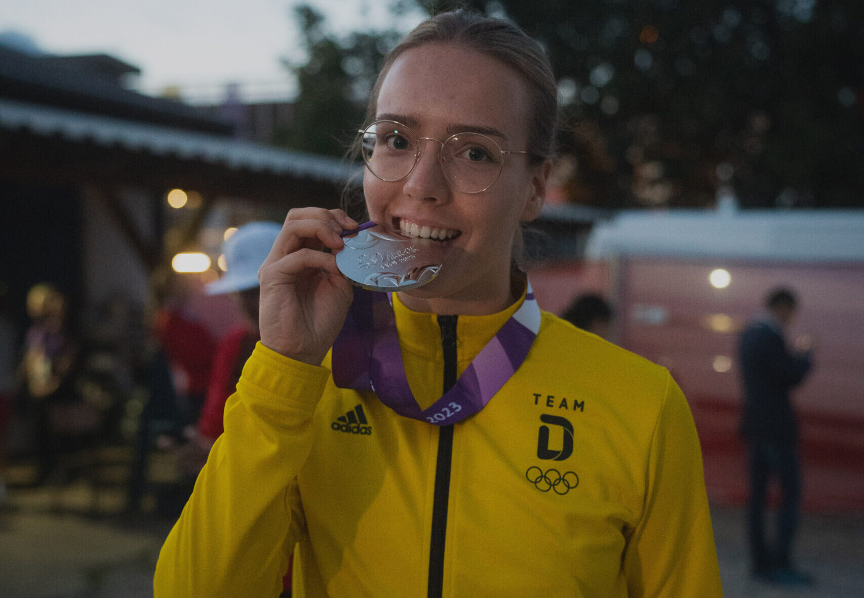 Frieda Echterhoff startet für den TV Wattenscheid. Ihr größter Erfolg: Gold beim European Youth Olympic Festival 2022 und Silber ein Jahr später. Echterhoff studiert demnächst Architektur an der Ruhr-Universität Bochum. Mehr Infos hier.