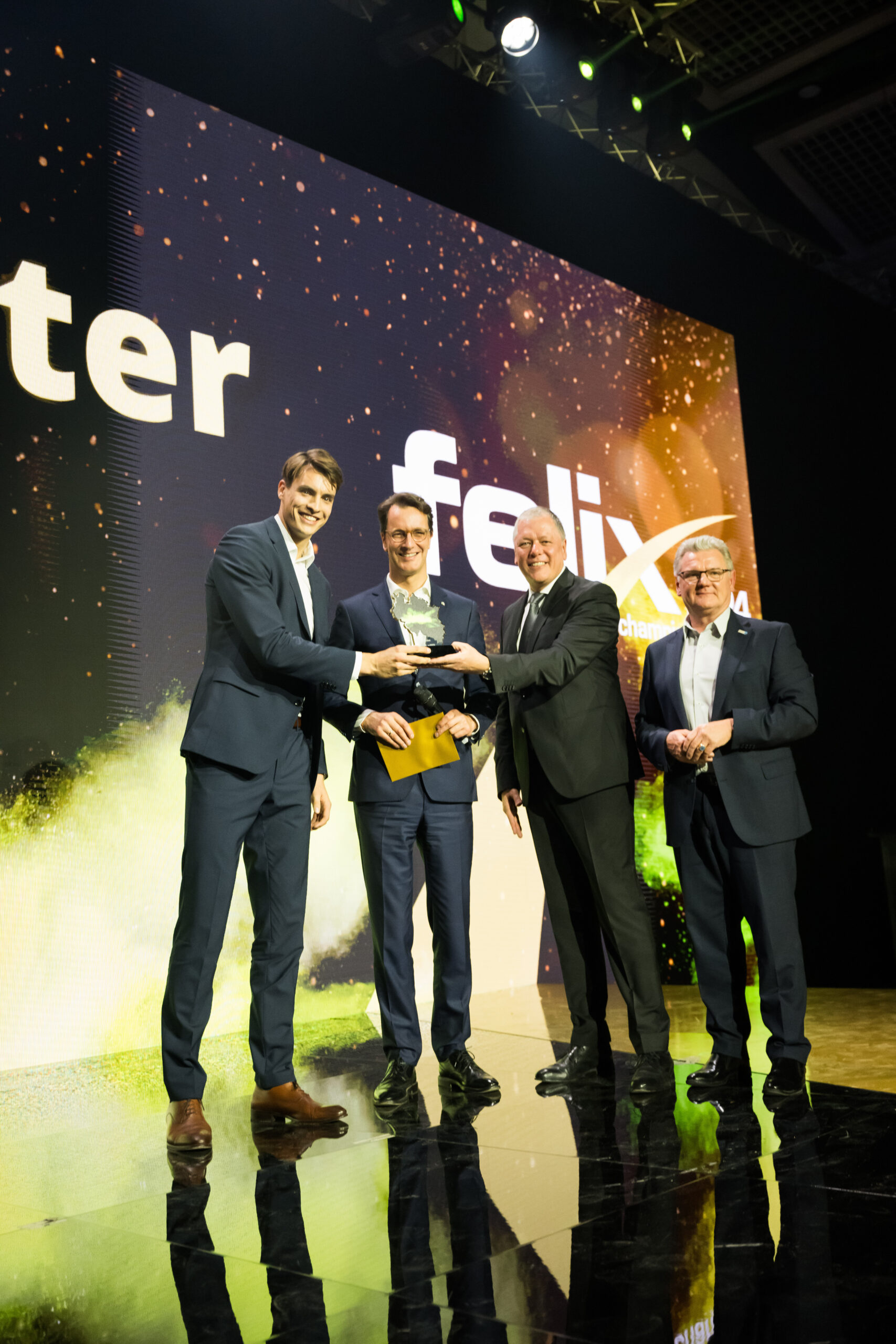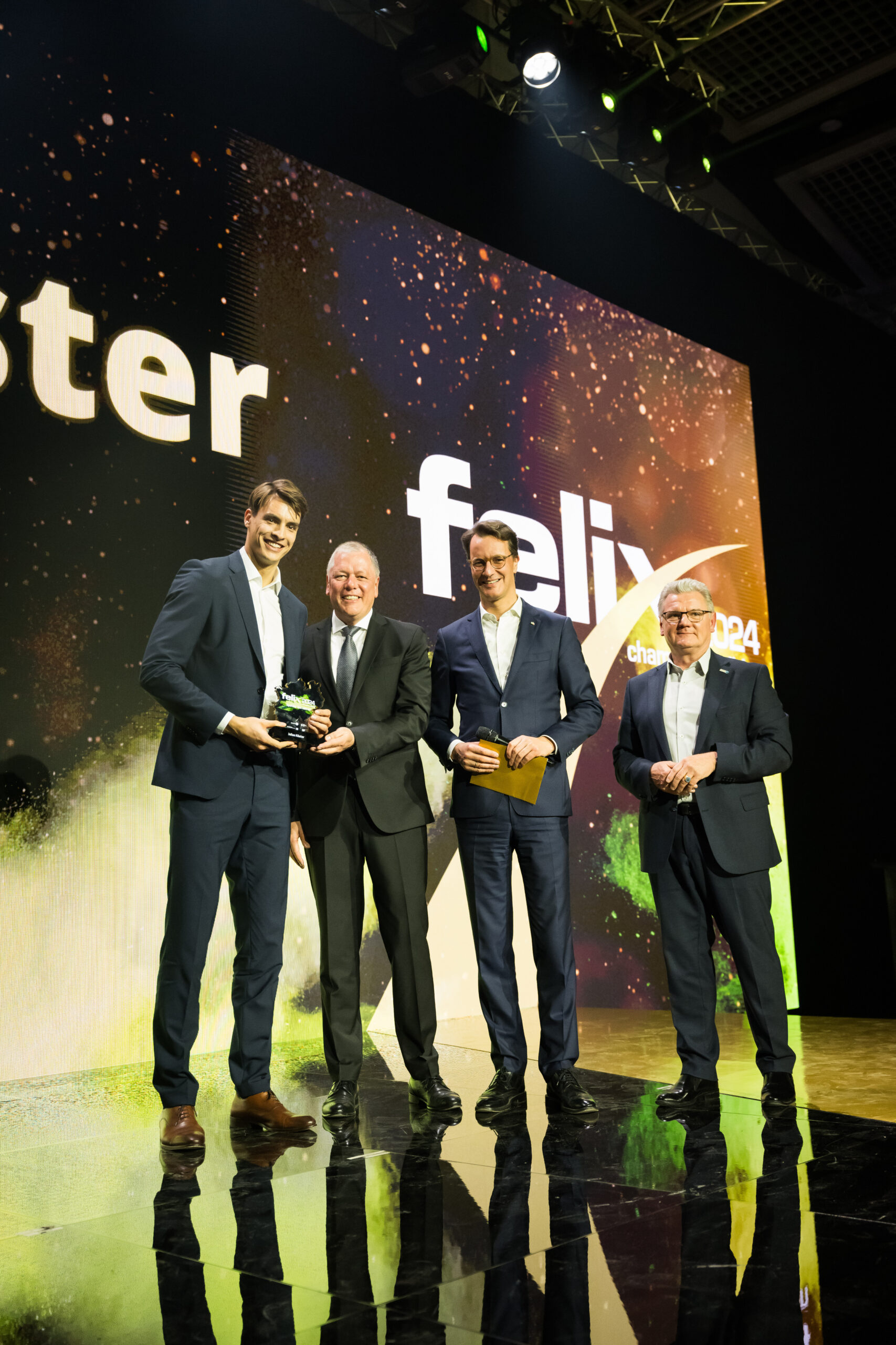 „Diese Veranstaltung finde ich so großartig, weil sie zum einen zeigt, welch starke Rolle NRW im nationalen und internationalen Spitzensport spielt und welch tolle Vorbilder wir in unserem Bundesland haben. Zum anderen zeigt der felix, was gute Sportförderung wert ist und bewirken kann. Hier stehen Olympiasieger- und Medaillengewinner direkt neben den Toptalenten und Stars von morgen. Wir als Unternehmen sind unglaublich stolz darauf, dass wir das Sportland.NRW und seine Akteure unterstützen können“, sagte WestLotto-Geschäftsführer Andreas Kötter, der den felix an den Sportler des Jahres Julian Köster (Handball) übergab.