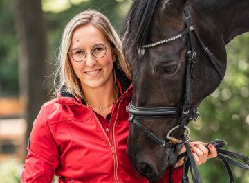 Üblicherweise sitzt die Medizinstudentin, die im Frühjahr 2022 ihr Physikum ablegte, an fünf Tagen in der Woche im Sattel. An einem weiteren Tag sorgt sie für ein „Ausgleichsprogramm“ für ihren Vierbeiner, zum Beispiel mit Spazierengehen. Auf dem Gelände des Deutschen Olympiade-Komitee für Reiterei (DOKR) in Warendorf bieten sich hervorragende Bedingungen – für Tier und Mensch. „Und natürlich ginge das alles nicht ohne ein tolles Team, das einen unterstützt“, so die 29-Jährige.