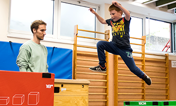 Am nächsten Tag sind die Kleinen in der Turnhalle dran. Dann wird erneut gehangelt, gesprungen, geklettert und der Blick fest auf ein Ziel gerichtet: Irgendwann so mutig und geschickt Hindernisse überwinden zu können wie ihre großen Vorbilder.